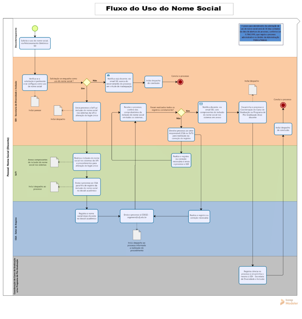 - Formulário de Solicitação de Uso de Nome Social via SEI (disponível em – Sistema Eletrônico de Informações – Nome Social).